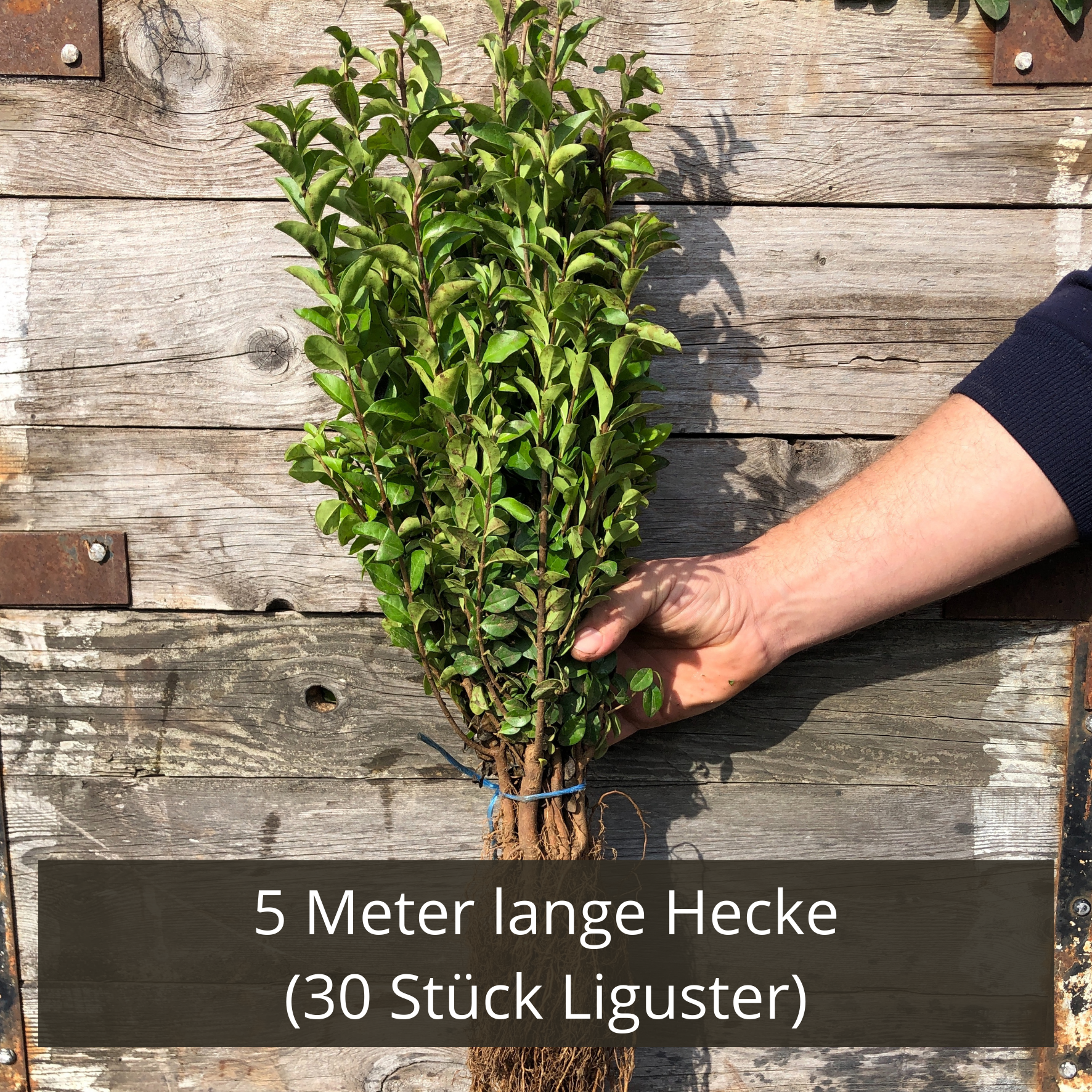 Enthält 30 Stück Liguster - Setzlingen, die für 5 Meter genug sind. Nach der zweireihigen Anpflanzung werden Sie eine 2 Meter höhe, dicke, wintergrüne Heckenwand bekommen.
